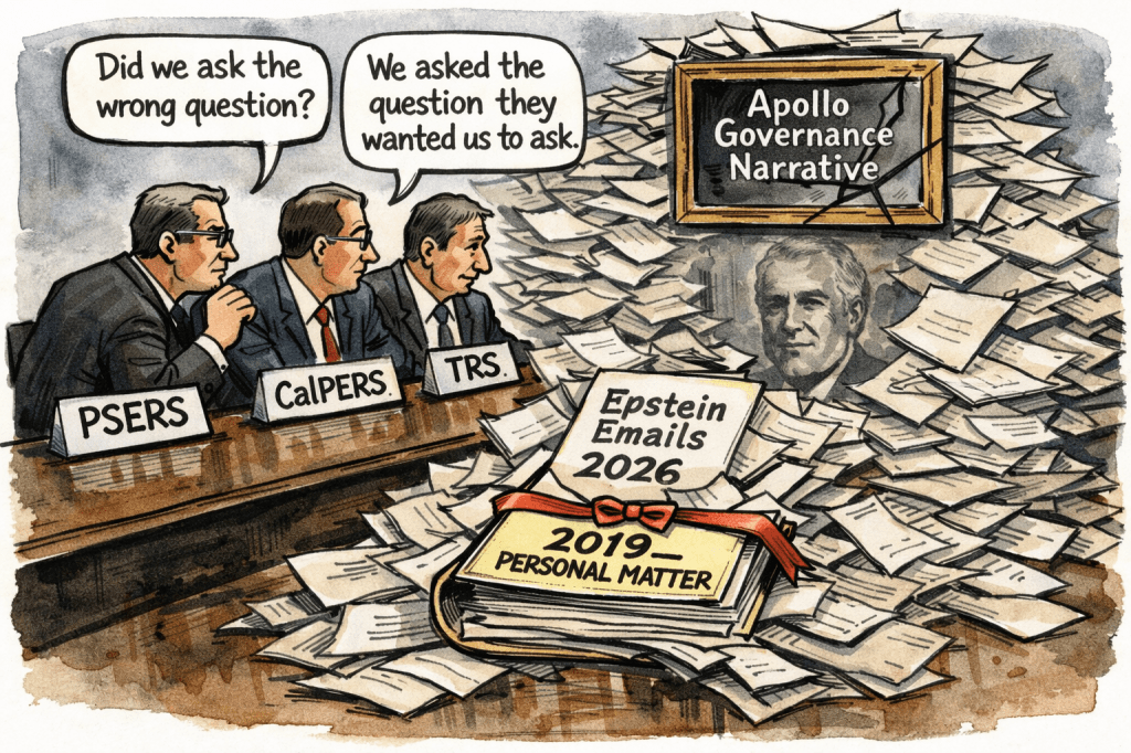 What happened with Apollo in 2019 was not settled history. Too many trustees accepted an incomplete — and now demonstrably inaccurate — narrative. The Naked Capitalism critique back then was more than snark; it was fundamentally right about the depth and implications of the relationships at play.