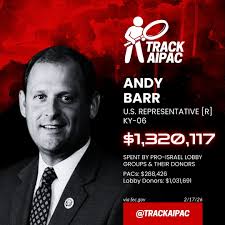 Andy Barr is also a major supporter of Israel and the Iran War as are many of his Epstein linked donors especially Apollo.
