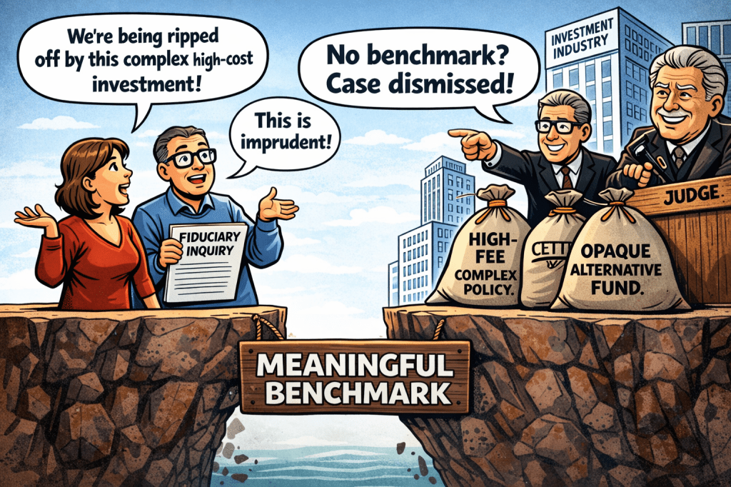 Our earlier discussion of target-date benchmarks — including why simple index comparisons are inadequate and how product design matters more than benchmarking — already exposed this fallacy. Benchmarks assume liquidity, transparency, and comparability — all of which are absent in the annuity, separate account, and private market contexts at issue in Intel, Cho, and other cases.