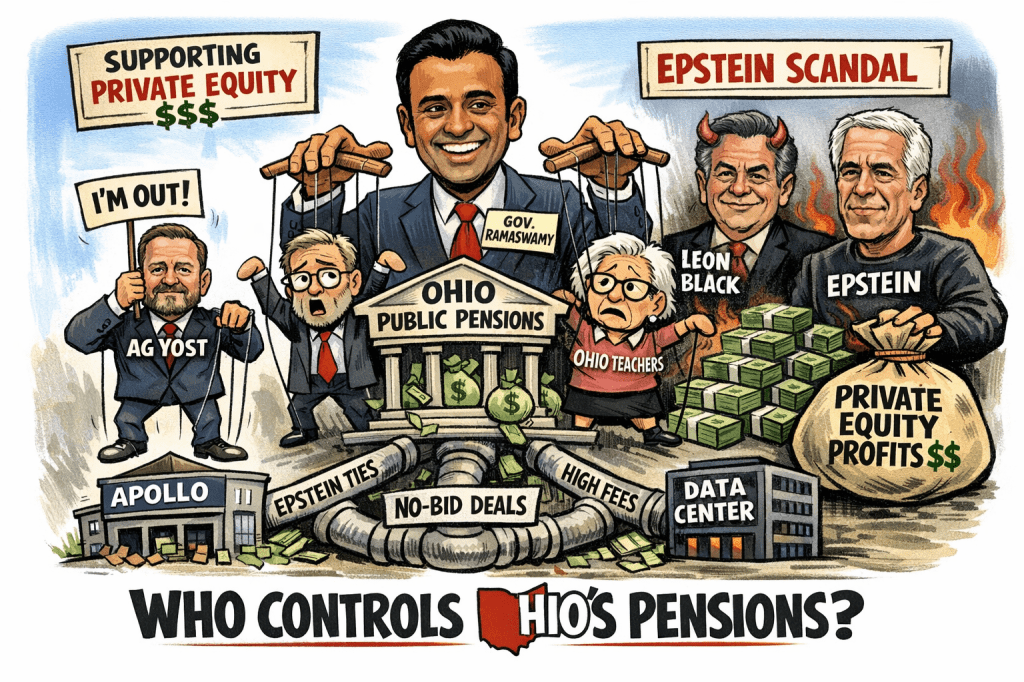 Instead, what emerges is something far more concerning: political consolidation that mirrors financial concentration. Ohio’s pensions are already heavily allocated to private equity. Now the political leadership overseeing those pensions is converging around a candidate whose personal wealth, business ventures, and advisory networks are deeply intertwined with that same ecosystem. That is not a coincidence. It is alignment. And for beneficiaries—teachers, public employees, retirees—it raises a fundamental question: if both the capital and the political oversight are concentrated within the same private equity orbit, who exactly is left to challenge the system?